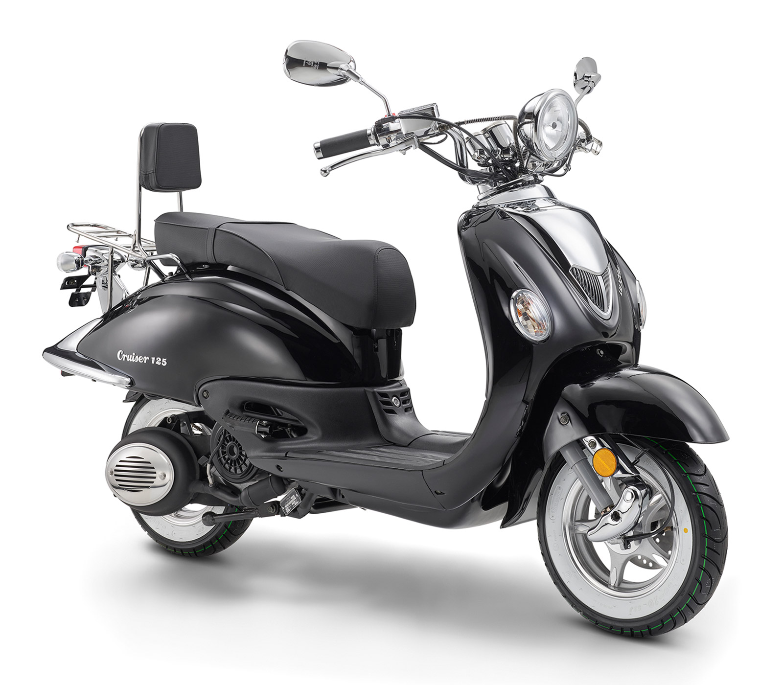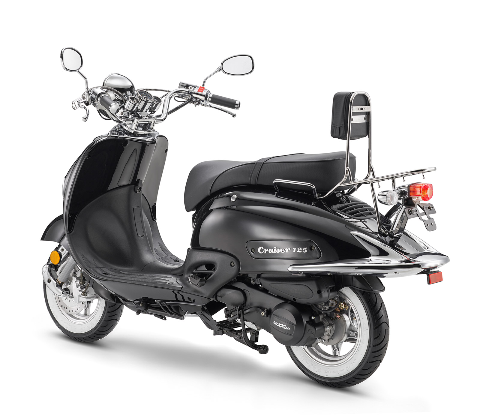 Zur umfangreichen Serienausstattung gehören außerdem Weißwandreifen, Beifahrer-Rückenlehne und Gepäckträger.